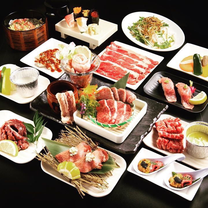 90分3980円〜仙台牛2種、仙台牛炙り肉寿司やドラゴンカルビ、牛タンなど120品食べ放題の宴会コースとなります笑