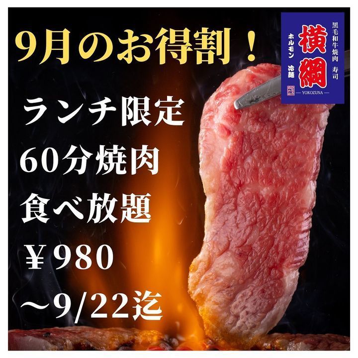 9/22まで限定の焼肉ランチ60分食べ放題980円をスタート🥩