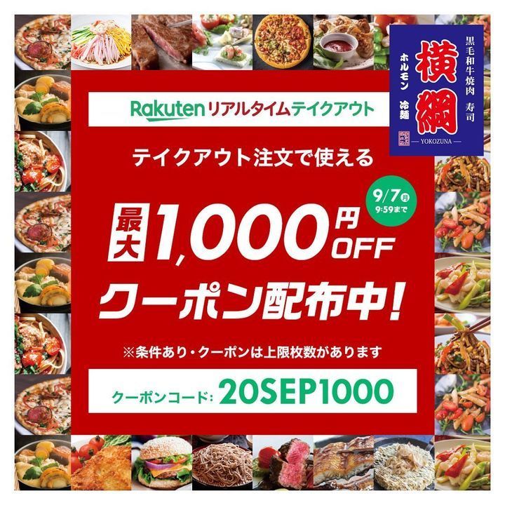 楽天リアルタイムテイクアウトにて、9月5日(土)0:00から、なんと一気に3種類のクーポンが発行されます。