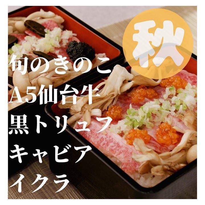 バターガーリック飯とカルビのスタミナUPお重!お肉、きのこ、いくらとトリプルな旨さでーす❗️