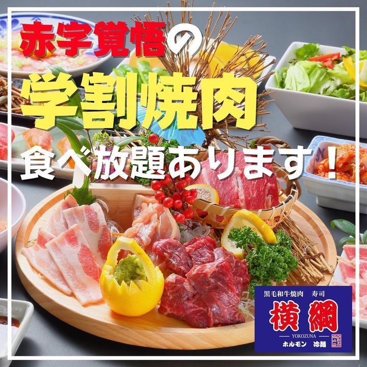 勉学に励む学生さんの味方👨🎓焼肉屋横綱では、学生限定の焼肉食べ放題🥩も取り揃えております❗️